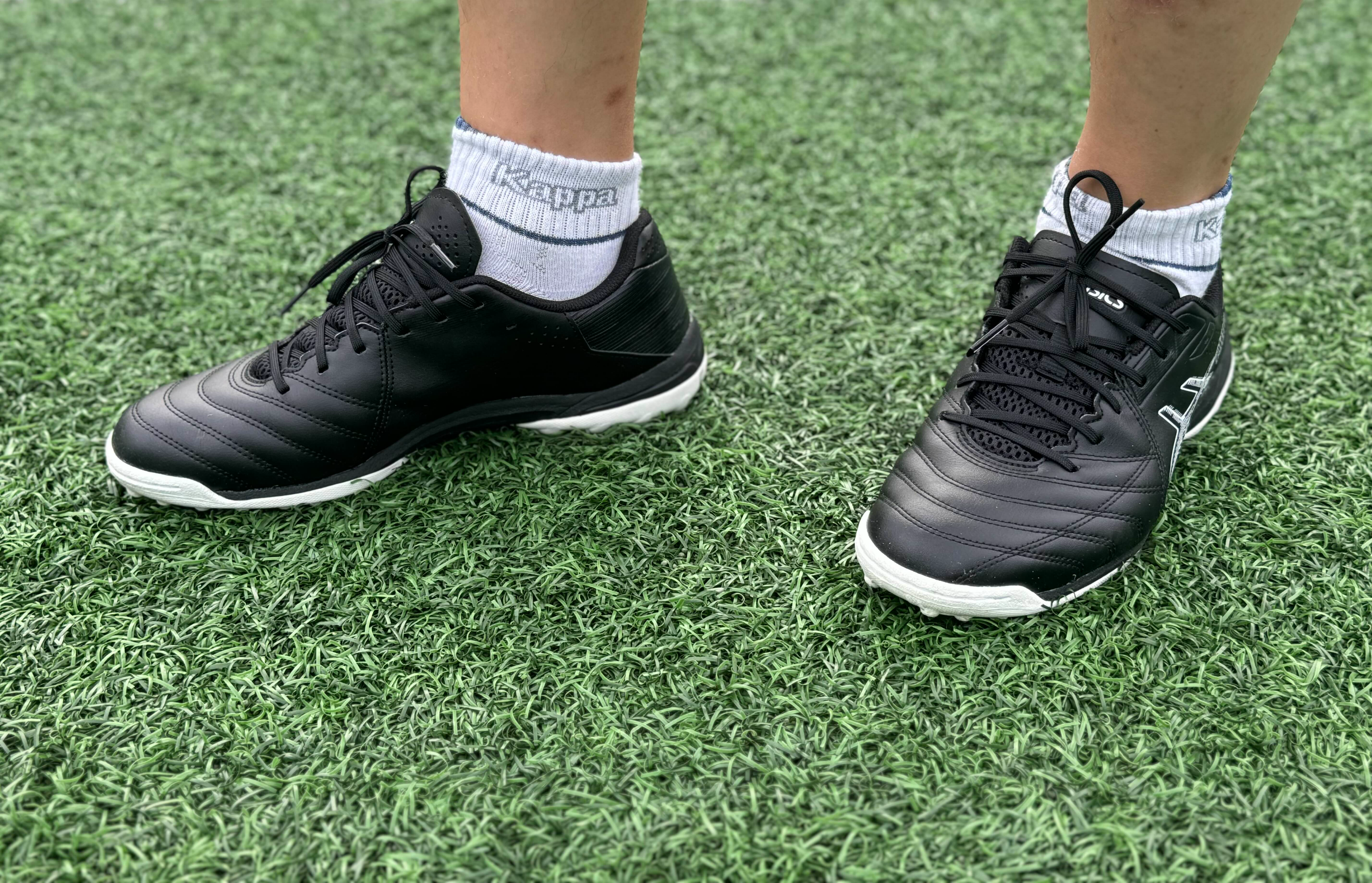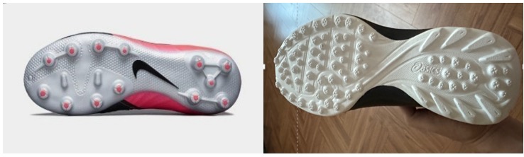 이에 비해 풋살화의 스터드는 작고 낮은 것들을 촘촘히 배치한다. 인조 잔디 구장에 맞게 세밀한 움직임에 적합한 형태이다.