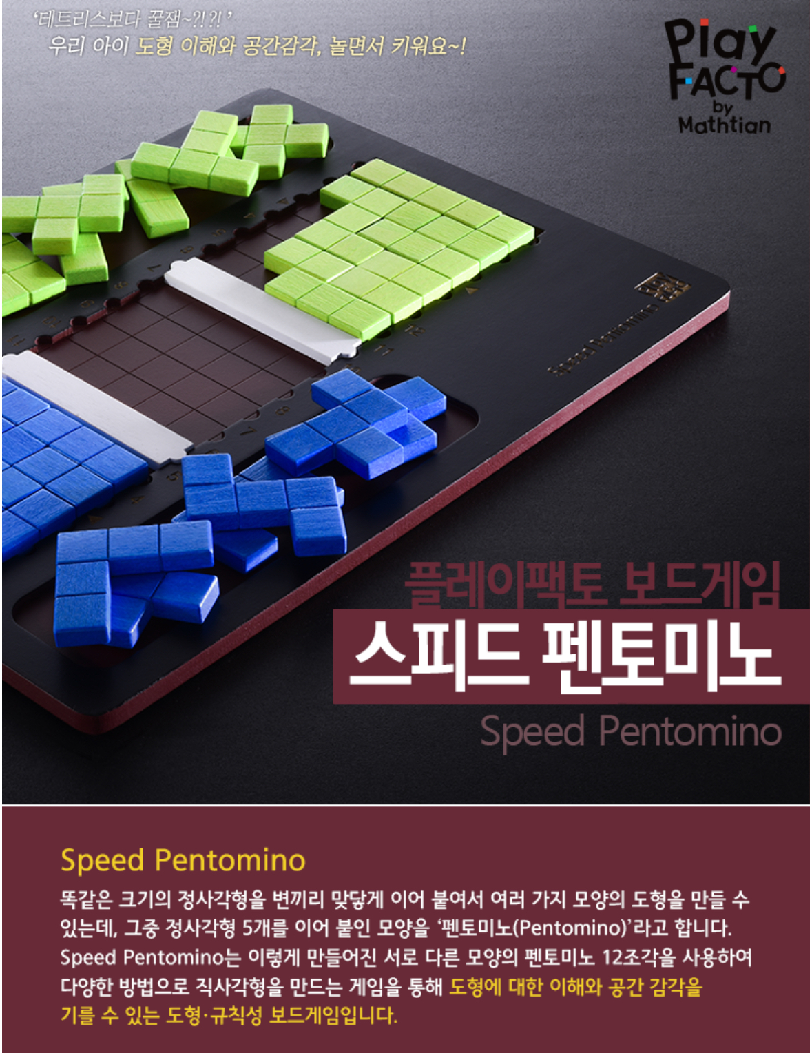 아들이 참여한 초등학교 1학년 경연은 연속 수 만들기, 컬러 도트(삼각형 배열 만들기), 스피드 펜토미노 세가지 게임을 진행했다고 한다. 특히 아들이 좋아해서 나도 즐겨 하는 스피드 펜토미노는 옛날 ‘테트리스 게임’에 나왔던 다양한 사각블럭으로 직사각형 영역을 채우는 대결형 게임으로 우봉고와 유사하기도 하면서 꽤나 스릴이 있다.