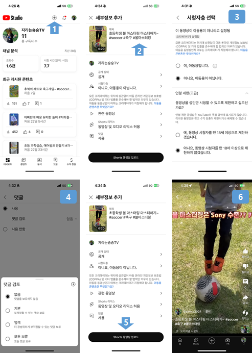 마지막 단계로 썸네일과 사운드가 삽입된 최종 편집 영상을 유튜브 계정에 올리며 된다. 유튜브 본인 계정의 ‘동영상 올리기’ 기능을 써도 되지만, 보다 전문적이고 안정적인 ‘유튜브 스튜디오’ 앱을 설치하여 사용하며 좋다(댓글 및 태그 설정 등 편리).