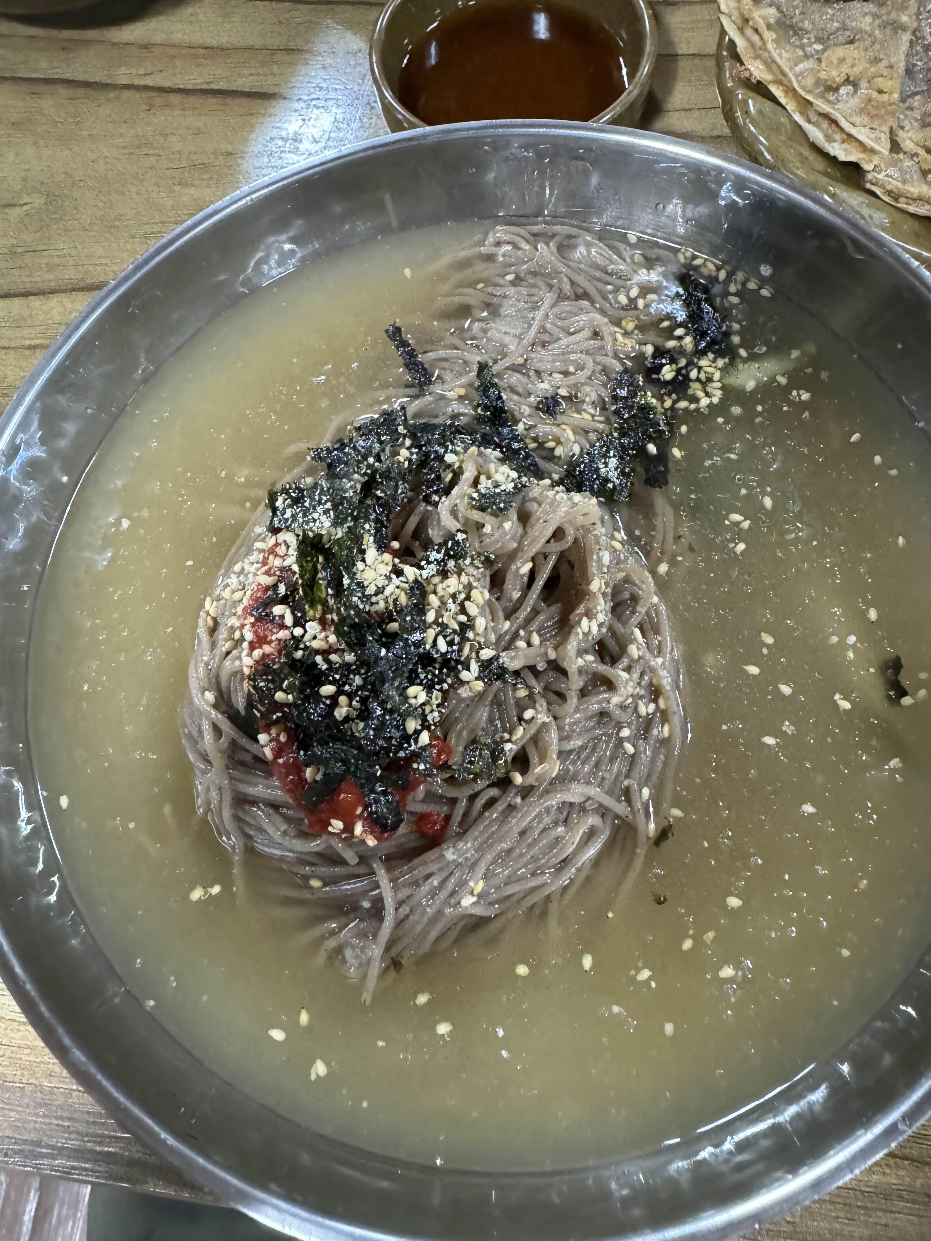 메뉴 자체는 일반적인 막국수집들과 별반 다르지 않지만 양도 푸짐하고 음식 맛도 담백한 편이다. 특히 쪽파와 김치를 살짝 넣은 메밀전은 아주 부드러우면서도 고소해서 우리가족 최애 메뉴이다.