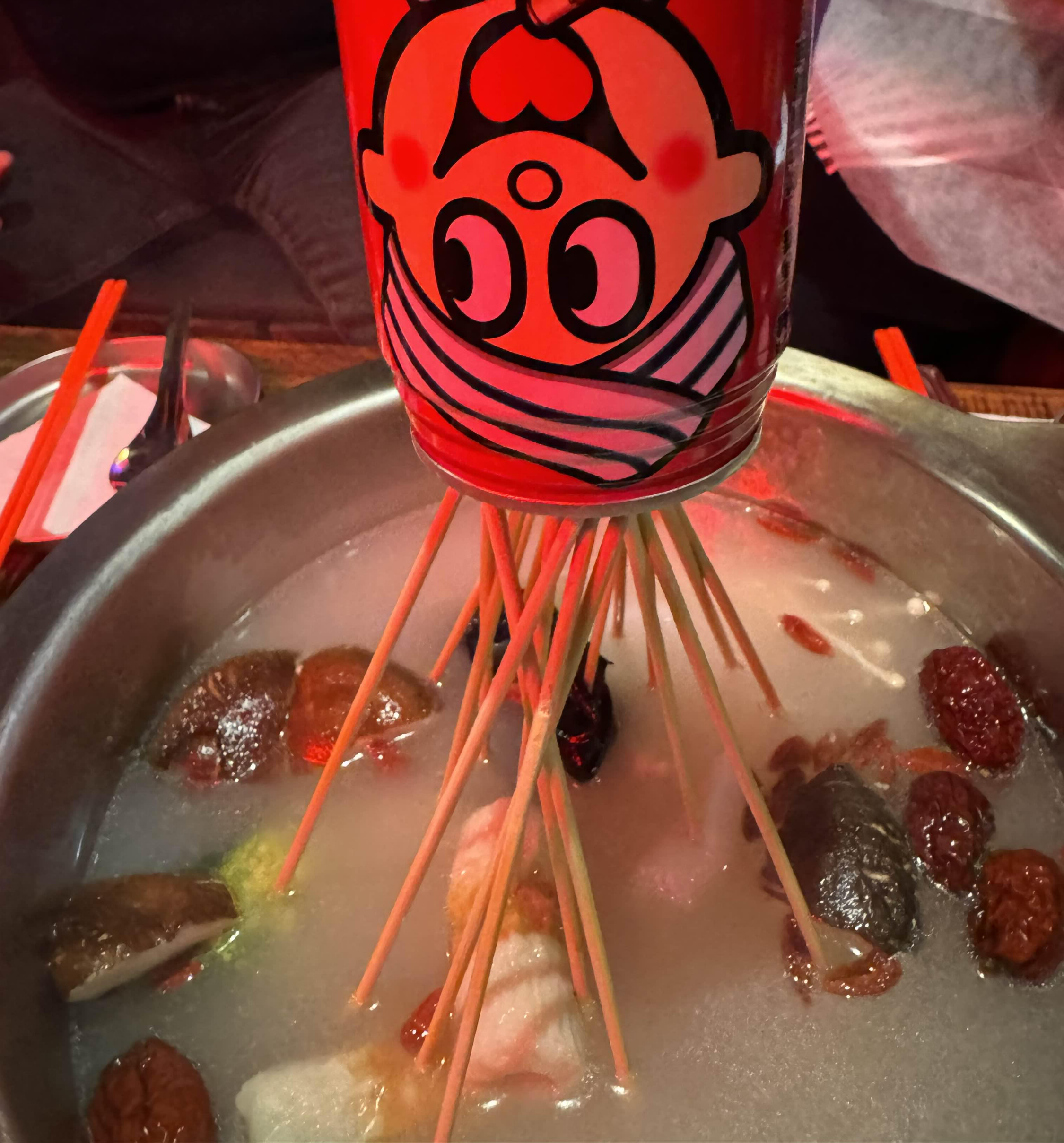 훠궈는 다양한 꼬치를 골라 먹는 맛이 있는데, 맛있는 건 경쟁이 치열하니 눈치도 좀 봐야 한다. 홍탕의 경우 많이 맵지 않고 향신료 맛도 적절해서 마라맛에 익숙하지 않아도 부담없이 즐길 수 있다.