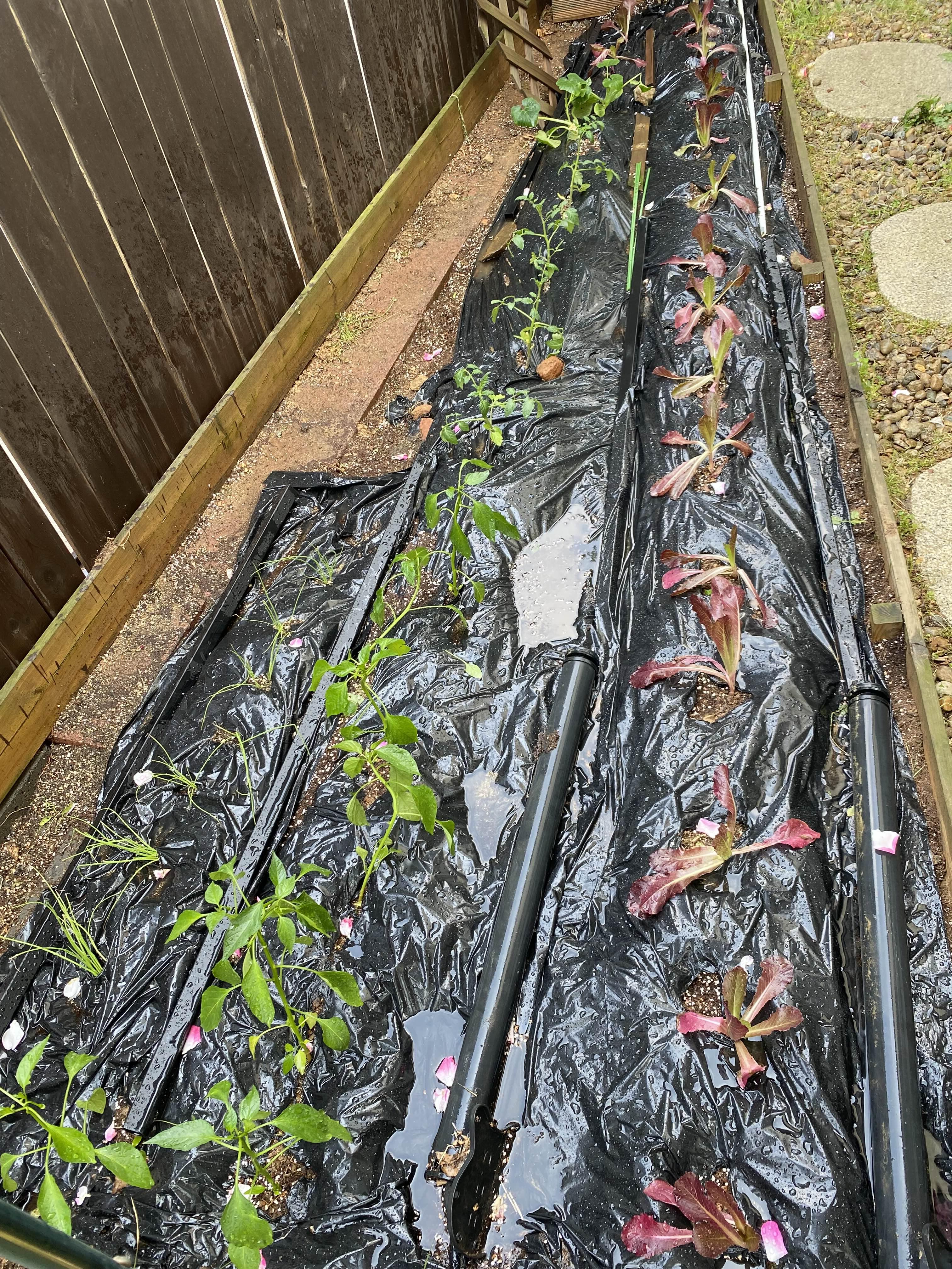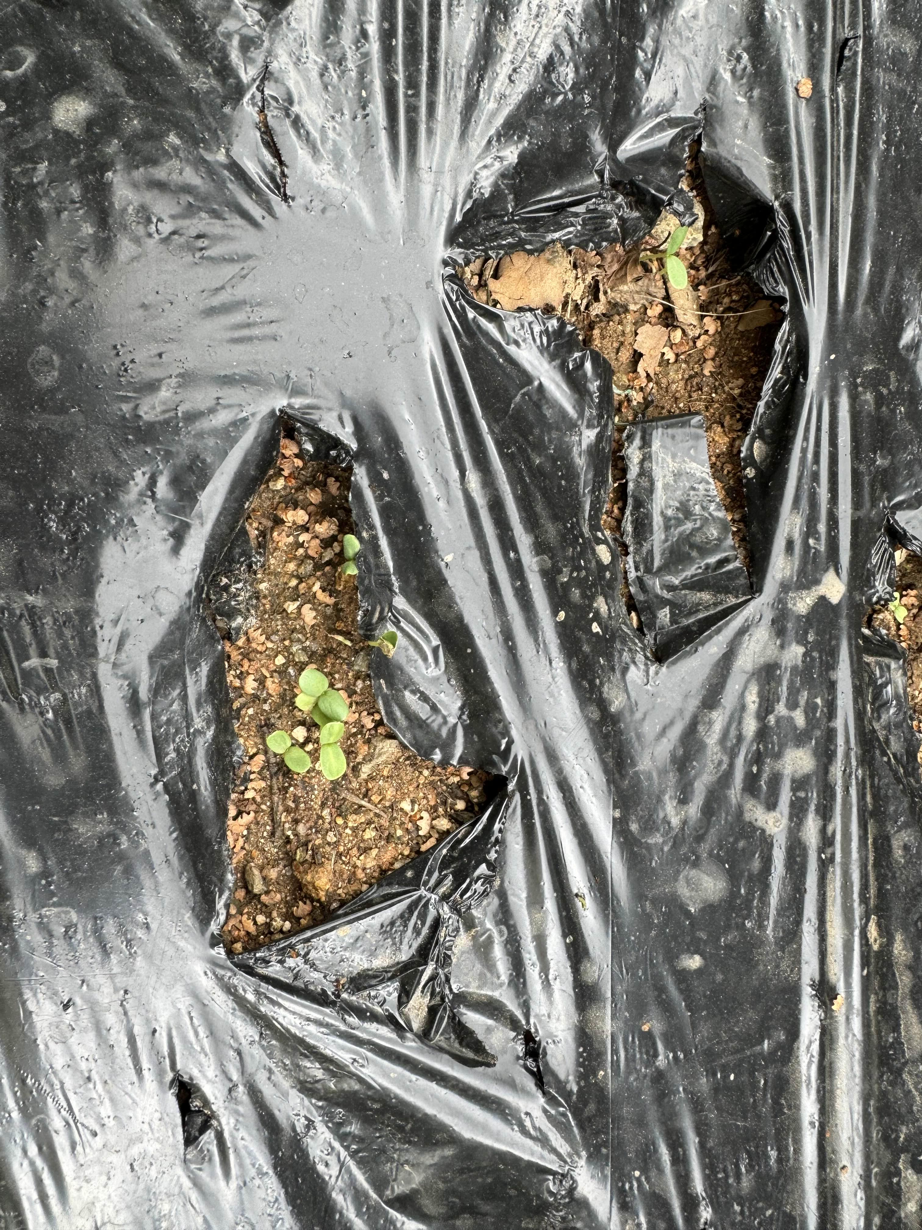 다음해에는 잡초 방지를 위해 농사용 비닐을 깔고 구멍을 내어 모종을 심었다.