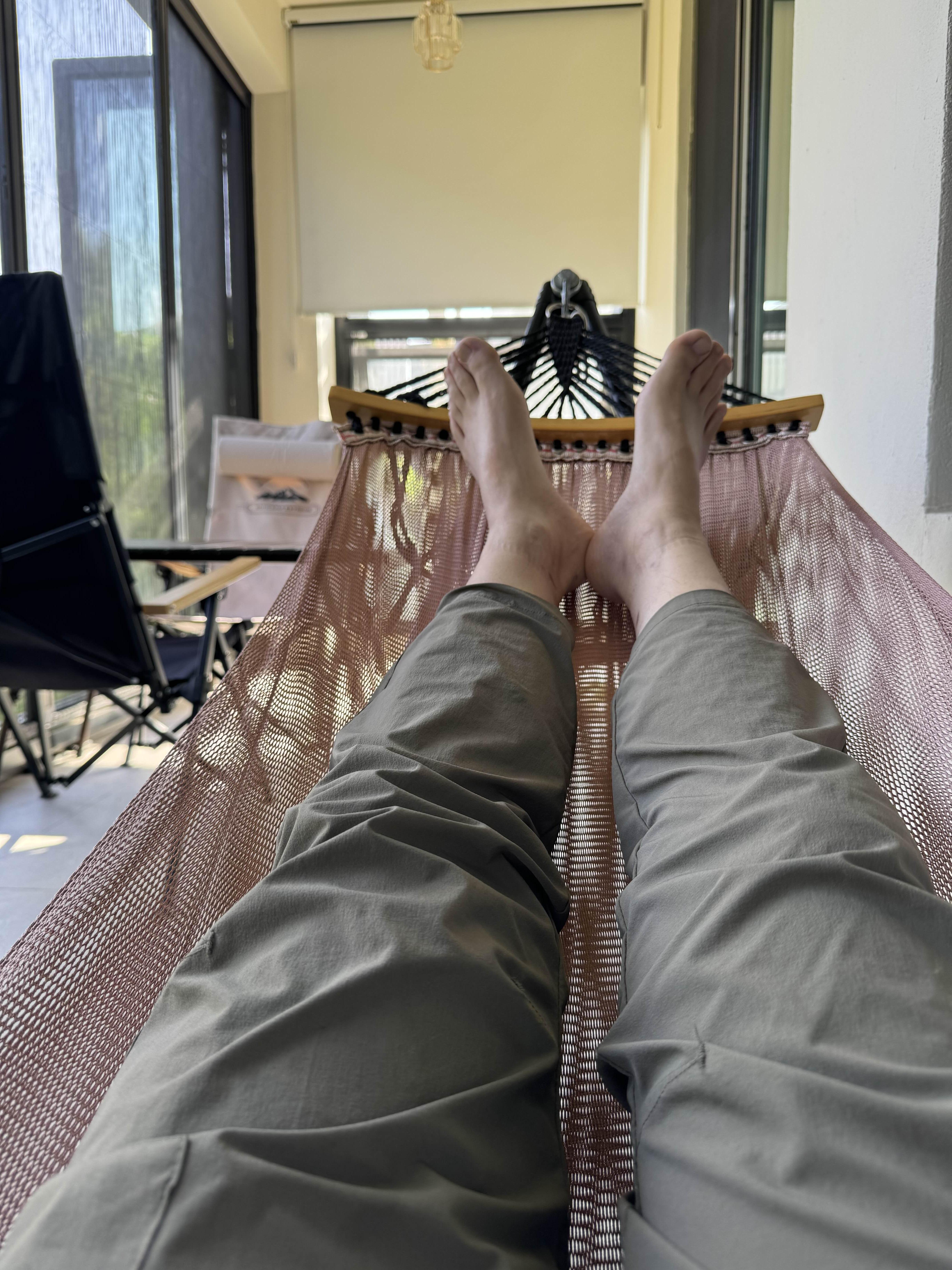 그러나 해먹에 몇 번 눕겠다고 집에 꽤 큰 구멍을 뚫는 것이 부담스러웠고 정원에 누워 모기에게 헌혈하는 것도 유쾌하지 않아 포기했다(해먹용 모기장 제품도 있지만 바람이 잘 통하지 않고 답답할 것 같다).